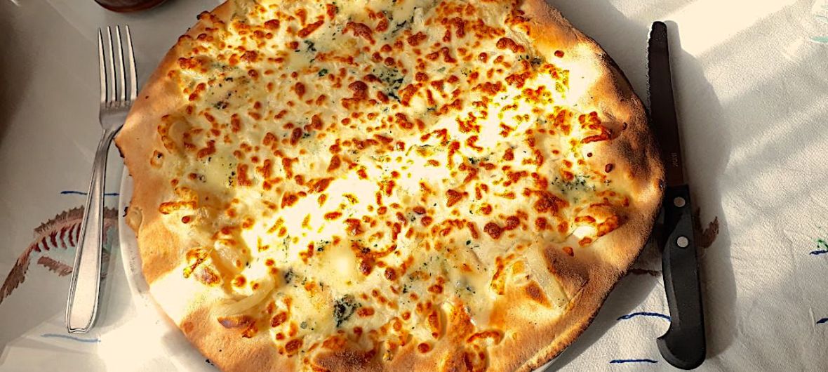 Pizzas à emporter ou sur place, toutes les pizzas sont cuites au feu de bois et préparées par le pizzaiolo.